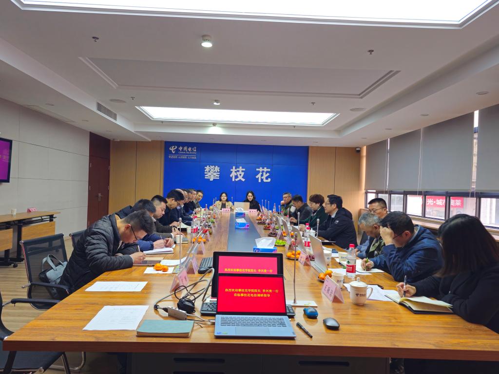 为进一步加强与中国电信攀枝花分公司在人才培养、实践就业、智慧校园建设等方面的合作,夯实“一融双高、产教融合”的办学路径,1月12日下午,党委副书记、校长李兴贵带队前往中国电信攀枝花分公司开展访企拓岗洽谈交流。