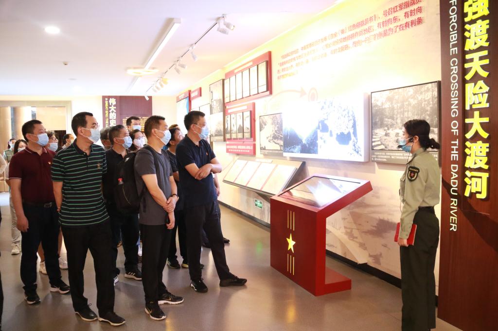 “渡河时,敌人的手榴弹正好落在船上!在枪林弹雨、宽300多米水流湍急的大渡河上,长10.5米、宽2.3米、高2.2米的小船只乘‘尖石堡’破‘千层浪’,载着17名勇士迈向胜利的彼岸,正是大渡河畔的翘首木船,在国民党军队口中‘不可逾越’的大渡河撕开了一道缺口。”在中国工农红军强渡大渡河纪念馆里,学员们认真地听着讲解,一件件文献实物、一张张历史图片,一段段文字记录把大家拉回到86年的红军长征的艰险历程,深刻体会“顾全大局、严守纪律、紧密团结的精神;就是紧紧依靠人民群众,同人民群众生死相依、患难与共、艰苦奋斗的精神”的长征精神。