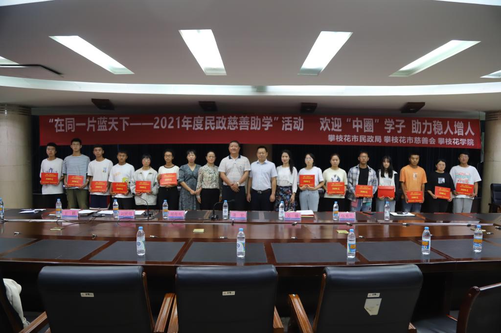 “在同一片蓝天下——2021年度民政慈善助学”活动由攀枝花市民政局、攀枝花市慈善会主办,旨在帮助攀枝花市及“中圈层”的困难新生入学,今年我校共有13名来自“中圈”(凉山州、昭通市、楚雄州、大理州、丽江市)户籍的家庭经济困难新生获得资助,每人获助金额5000元,共计65000元。