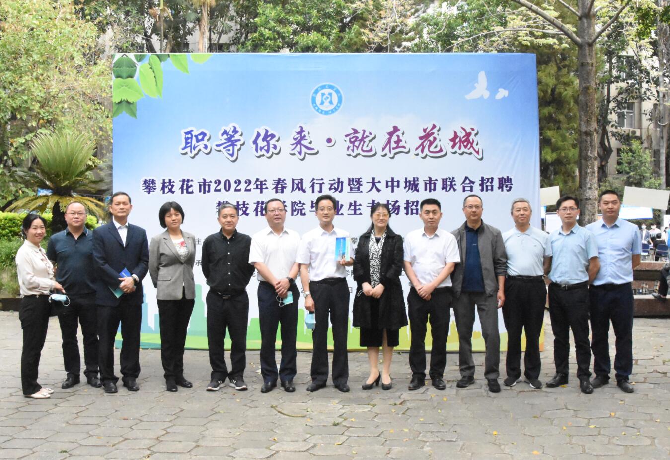 3月31日上午,攀枝花市2022年春风行动暨大中城市联合招聘攀枝花学院毕业生专场招聘会在我校博学楼前举办。全校1000余名毕业生参加招聘会。党委书记王斌、副校长王兵,市人力资源和社会保障局局长刘敏、副局长徐洪江亲临招聘会现场。