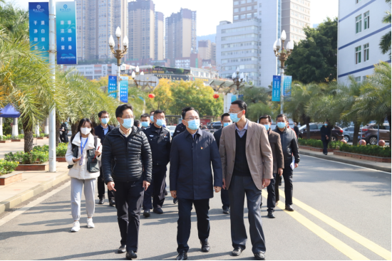 2月23日下午,市委常委、政法委书记季雷来校调研校园安全工作,市委政法委、市教育和体育局、市公安局、市应急管理局、市市场监管局、市城管执法局分管领导参加调研,党委书记王斌、副校长朱波强陪同调研。