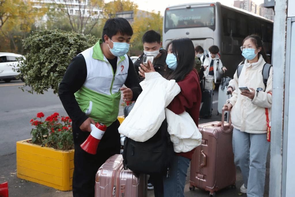 返校期间,同学们按照“分批开学,错峰返校”的原则,分期分批有序返校。返校同学在志愿者的指引下间隔排队,核实身份、查验健康码、测量体温、消毒行李物品,经过严格的防控检查流程平安、健康、卫生地进入校园。