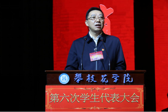 11月20日上午,在庄严的国歌声中,攀枝花学院第六次学生代表大会在会堂隆重开幕。本次学生代表大会的召开正值全面贯彻落实习近平总书记“七一”重要讲话精神、党的十九届六中全会精神,继续将新时代下学生会组织改革向纵深处推进的关键时期,是在全党全国实现了第一个百年奋斗目标,意气风发向着全面建成社会主义现代化强国的第二个百年奋斗目标迈进的关键历史节点召开的青春盛会。本次大会的主要任务是:全面回顾和总结攀枝花学院第五次学生代表大会以来学生会的工作,围绕学校第二次党代会确定的工作目标,科学规划学生会今后一个时期的工作方向和任务;进一步提升我校学生会自我服务、自我管理、自我教育和自我监督的能力,提高学生会组织服务水平,为广大学生的全面发展、成长成才搭建更广阔的舞台。
