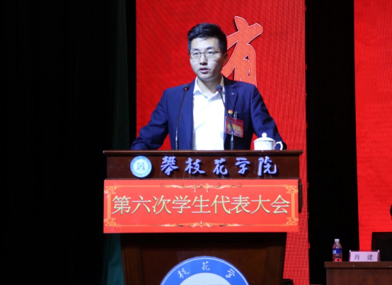 开幕式后,攀枝花学院第六次学生代表大会第一次全体会议在会堂举行,第五届学生委员会委员肖建代表学生会做工作报告: