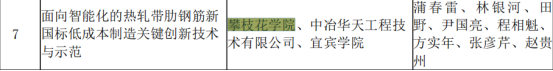 在2021 年度四川省科学技术奖拟奖项目公示中,我校亦取得喜人的突破。首次以第一完成单位身份获省科学技术进步奖二等奖1项,同时还获三等奖1项。其中,二等奖是攀枝花学院、中冶华天工程技术有限公司、宜宾学院联合申报的《面向智能化的热轧带肋钢筋新国标低成本制造关键创新技术》,我校完成人是程相魁;三等奖是攀枝花学院、四川煤矿安全监察局安全技术中心、淮南矿业(集团)有限责任公司煤业分公司联合申报的《深部巷道松软围岩稳定性控制关键技术及应用》,我校完成人是侯俊领。