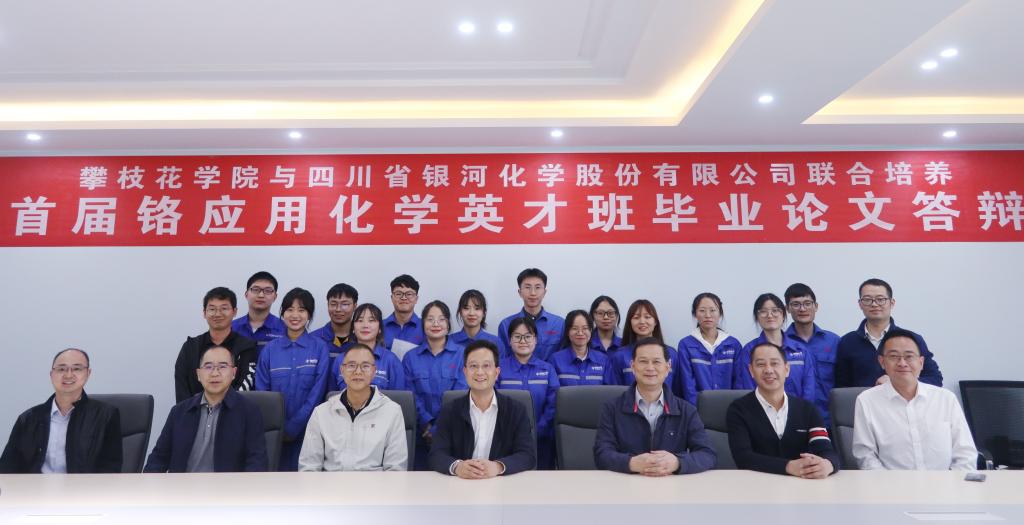 据悉,铬应用化学英才班由我校与四川省银河化学股份有限公司联合培养,实行校企双导师制。此次毕业答辩会,我校导师与企业导师共同组成校企混编答辩组,既注重审阅学生毕业论文的规范性、学术性、实践性,也融入了职业技能、职业素养和职业礼仪的考察。