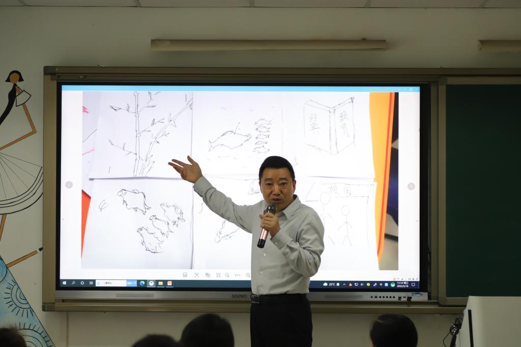 胥刚分享了自己的六宫格绘画作品。他认为,教师要有高尚的品格,有宽广的胸怀,有高度的使命感;要带领学生博览群书,引导学生激流勇进,教育学生求真务实;努力成为学生成长成才的导师和健康生活的朋友。