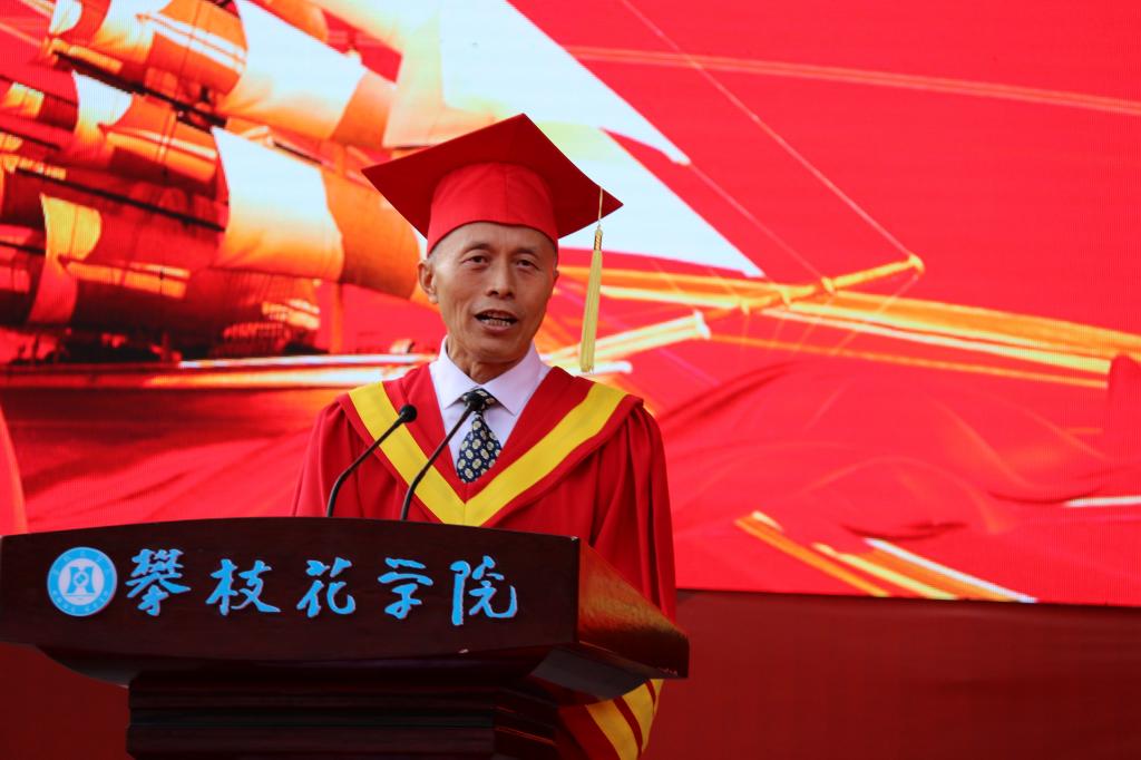 他寄语毕业生,要做“攀登则高、有容乃大”的自律攀大人,自觉于点点滴滴、时时处处,自强于国之大者、自小为之的伟大实践与伟大梦想,力争“强国圆梦,功成有我”。他勉励广大毕业生,常怀感恩之心,砥砺报国之志,严持自律之行,蹚平幸福之路,将奋斗作为青春最亮丽的底色,把小我融入到伟大梦想的大我中,做中国特色社会主义事业合格的建设者和可靠的接班人。
