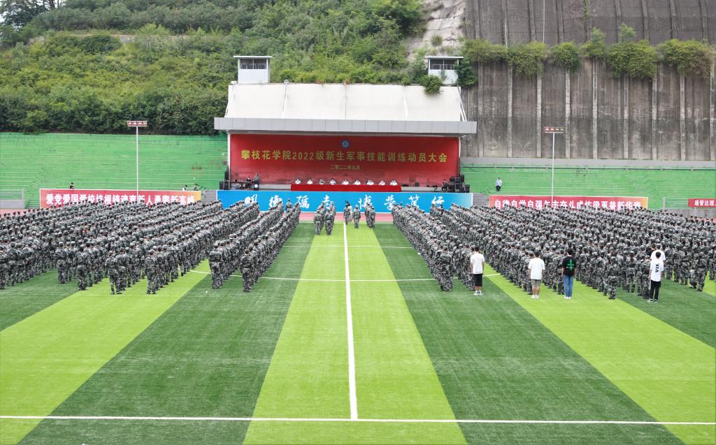 9月25日下午,我校2022级新生军训动员大会在南苑田径运动场举行,首批符合疫情防控规定的1423名新生身着迷彩服,列队集结,开启军事训练。校党委书记王斌、党委副书记胥刚、东区武装部上校部长康贺卫出席大会。