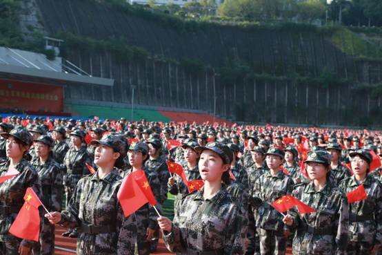 全体新生在2022级艺术学院学生李春兰带领下,集体宣誓,争做新时代“有理想、有本领、有担当”的优秀青年。