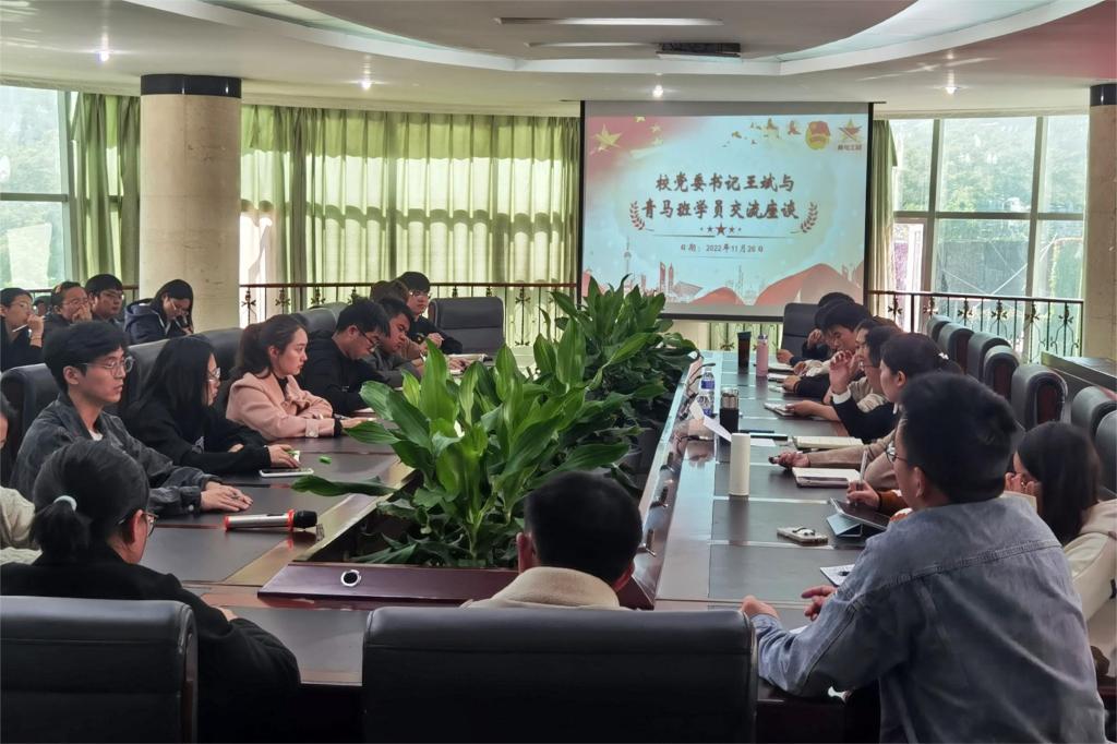 11月26日下午,校党委书记王斌与青马班学员在办公楼400会议室围绕“青马班学员的职业选择”开展座谈交流。校团委负责人及相关同志参会。