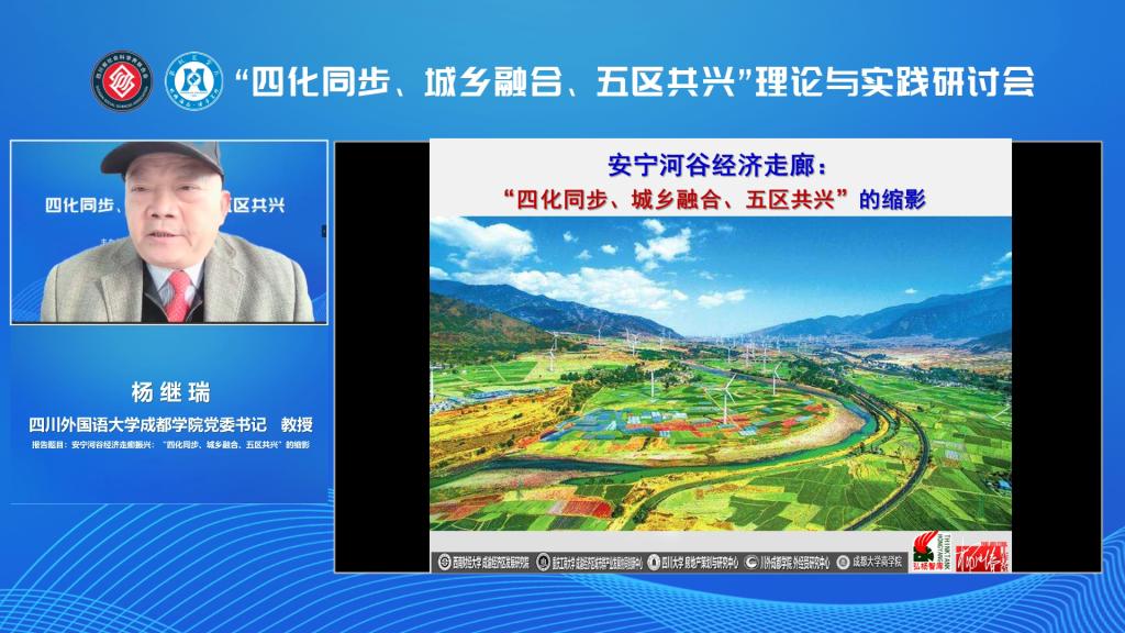 12月23日,由四川省社科联和攀枝花学院联合主办、攀枝花学院经济与管理学院承办的“四化同步、城乡融合、五区共兴”理论与实践研讨会在攀枝花学院召开。来自全省各市州社科联、研究机构的专家学者和来自西南财经大学、四川大学、四川外国语大学、成都理工大学、西华师范大学、四川轻化工大学、宜宾学院、四川旅游学院、内江师范学院、西昌学院等省内二十多所高校的师生通过线上线下的方式参加了此次研讨会。大会由攀枝花学院副校长王兵主持。