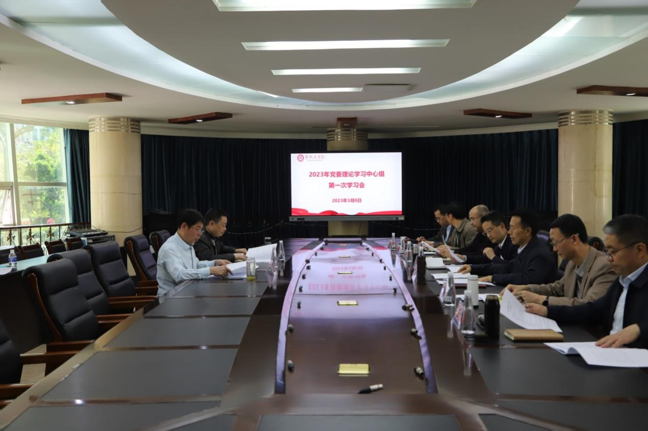 3月8日下午,我校召开2023年党委理论学习中心组第一次学习会,会议以“深入学习贯彻党的二十大精神和全国‘两会’精神,全力推动全国文明校园创建,牢牢把握教育高质量发展总体要求,凝心聚力、踔厉奋发,推进学校各项事业在新的一年开好局、起好步。”为主题。在校校领导、党委常委参加会议,党委书记王斌主持会议。