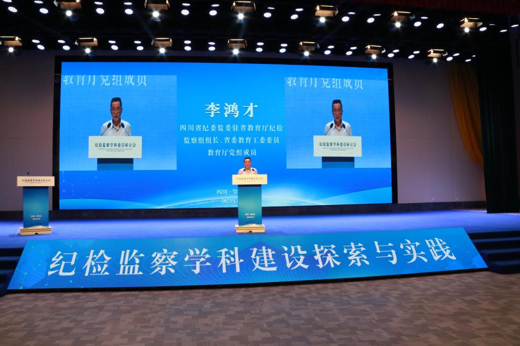 省纪委监委驻省教育厅纪检监察组组长、省委教育工委委员、教育厅党组成员李鸿才到会讲话。他说,着重加强纪检监察学科建设,对于深入推进全面从严治党、加快培养高素质专业化纪检监察人才、繁荣纪检监察学术研究、构建中国特色哲学社会科学学科体系具有重要意义。攀枝花学院要以这次会议为契机,在纪检监察学科建设发展、纪检监察人才培养上不断取得新成效。希望各级各界、各位领导、专家学者继续关心支持我省高等教育发展和纪检监察学科建设,共同推动全省纪检监察工作高质量发展。