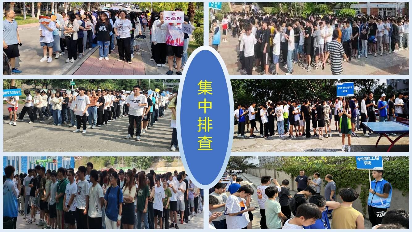 9点45分,各学院迅速集结、清点人员并通过对讲机向临时指挥部上报学生情况。