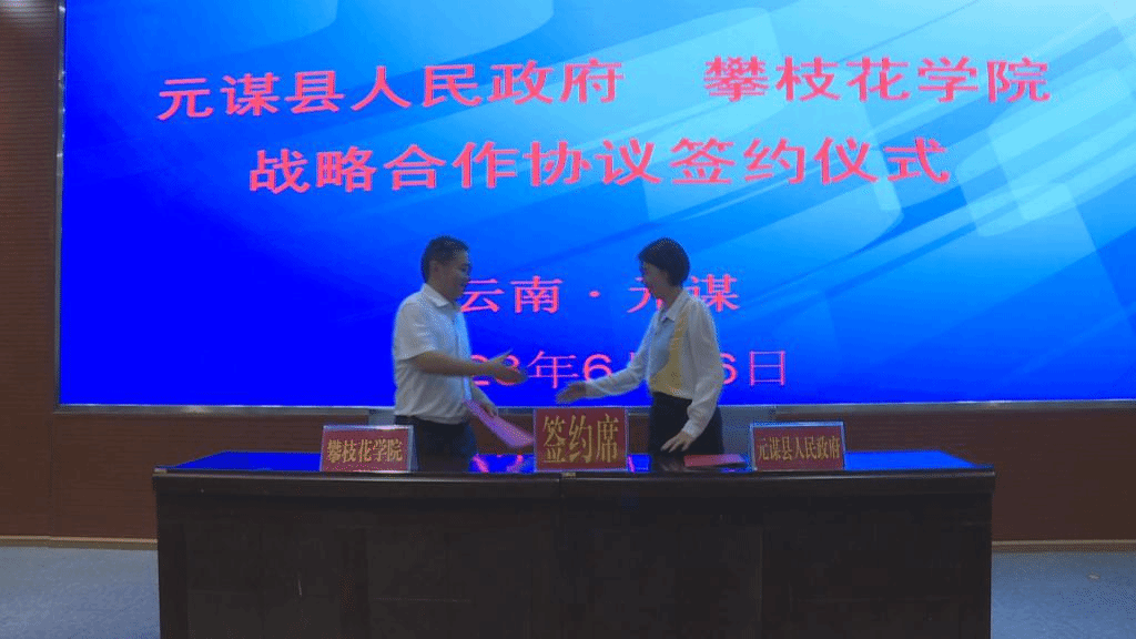 6月16日下午,我校与元谋县人民政府在元谋人博物馆二楼会议室举行全面战略合作协议签约仪式。副校长王兵,县委常委、县人民政府副县长包雁鸿出席仪式,并代表双方签订《元谋县人民政府与攀枝花学院全面战略合作协议书》,双方就合作具体事项进行座谈交流和深入洽谈。