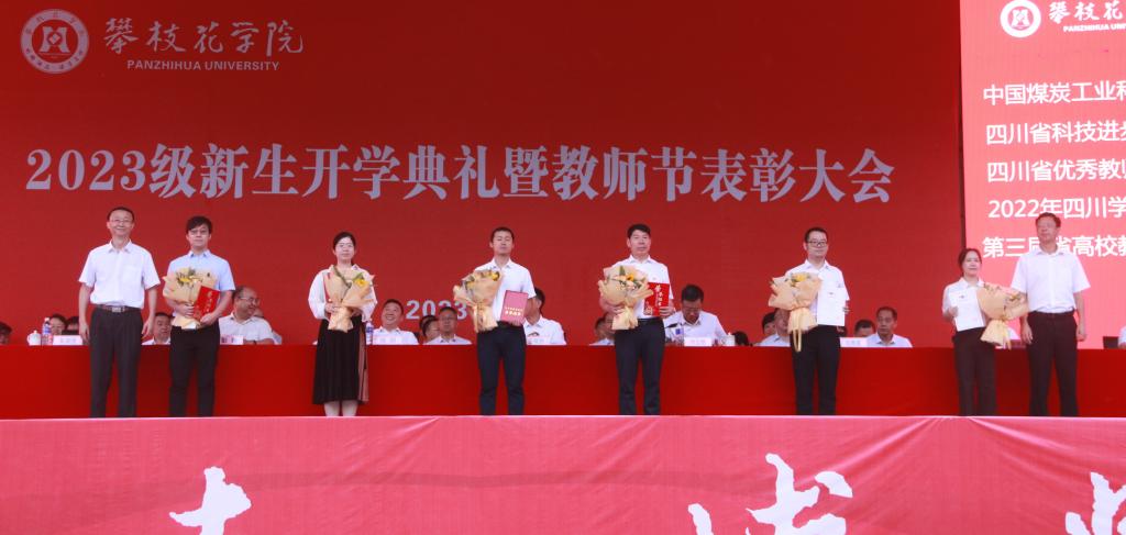 副校长朱波强、石维富先后为荣获“中国煤炭工业科学技术奖一等奖”的侯俊领老师、“四川省科技进步二等奖”的陈敏老师、“四川省优秀教师”的田从学老师、“2022年四川学校思政课教师年度人物”的朱云生老师、“第三届四川省高校教师教学创新大赛三等奖”的杨涛老师和韦丽老师颁奖。