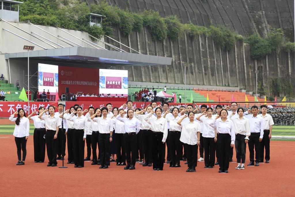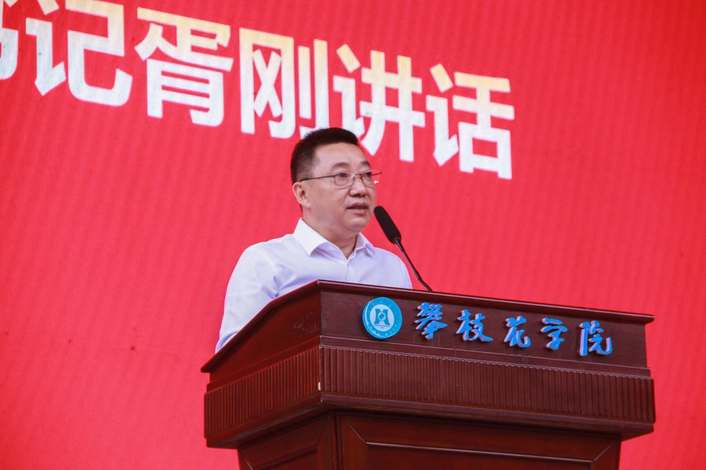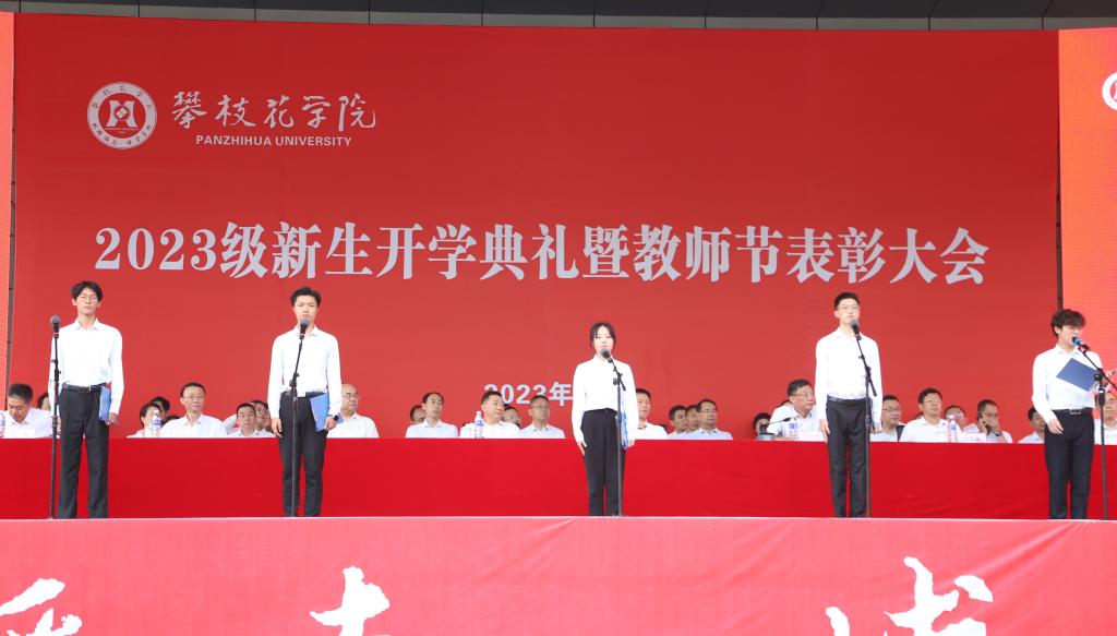 典礼上,马克思主义学院教师罗春秋、钒钛学院教师蒋志强、体育部教师普国飚、艺术学院教师王莉琴、生物与化学工程学院教师唐伟伟分别从“德、智、体、美、劳”五个方面寄语新生要立大志、明大德,懂智、增智、守智,强身健体、促进身心健康发展,发现美、追求美、提升审美能力,崇尚劳动、热爱劳动、弘扬劳动精神,坚持自律、自觉、自强,争做有理想、敢担当、能吃苦、肯奋斗的大学生,共同谱写阳光、健康、美丽新篇章!