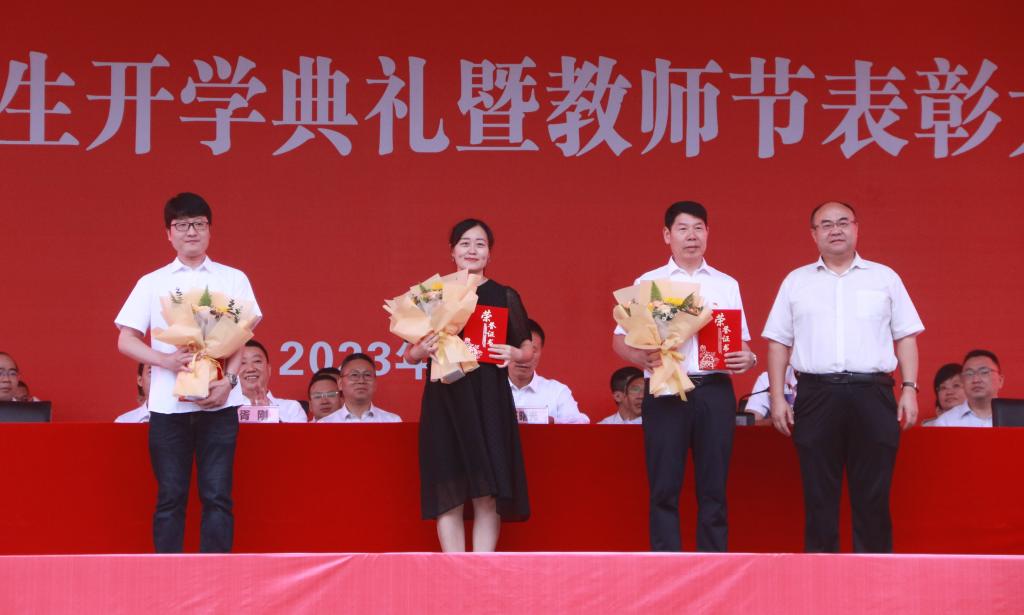 庄严的升旗仪式结束后,大会进行教师节表彰。