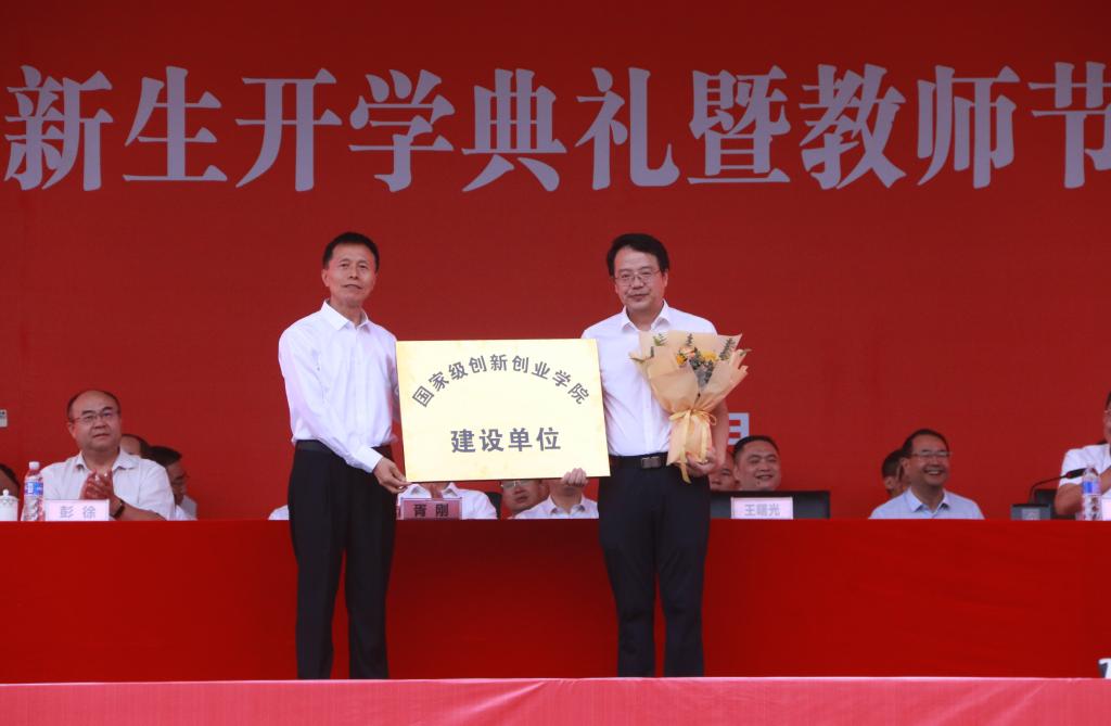 党委副书记、校长王曙光为创新创业学院授牌“首批国家级创新创业学院建设单位”。