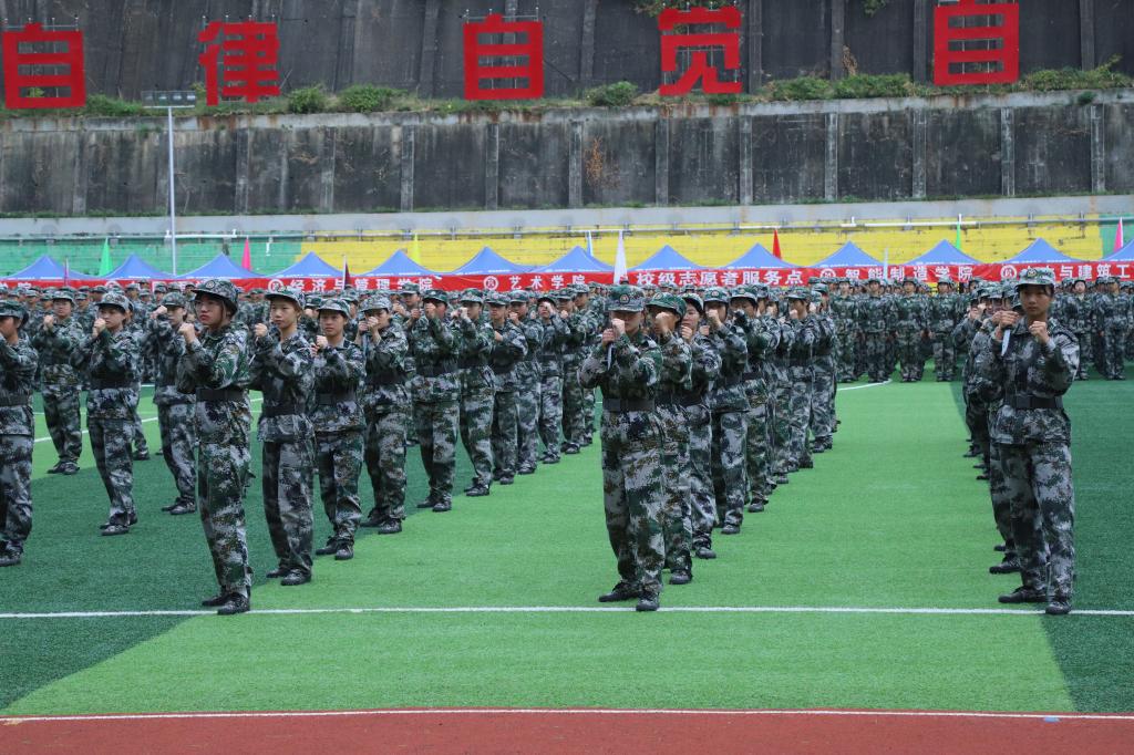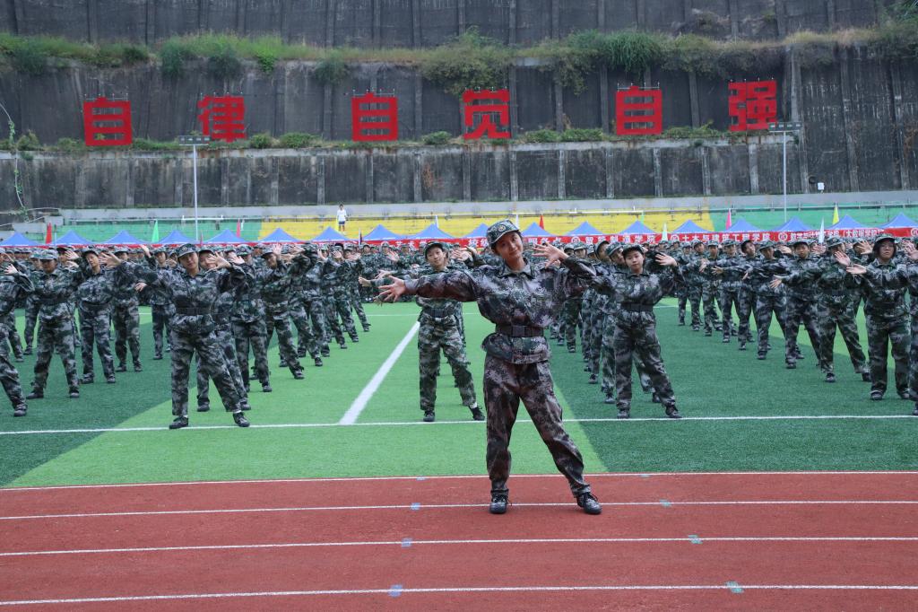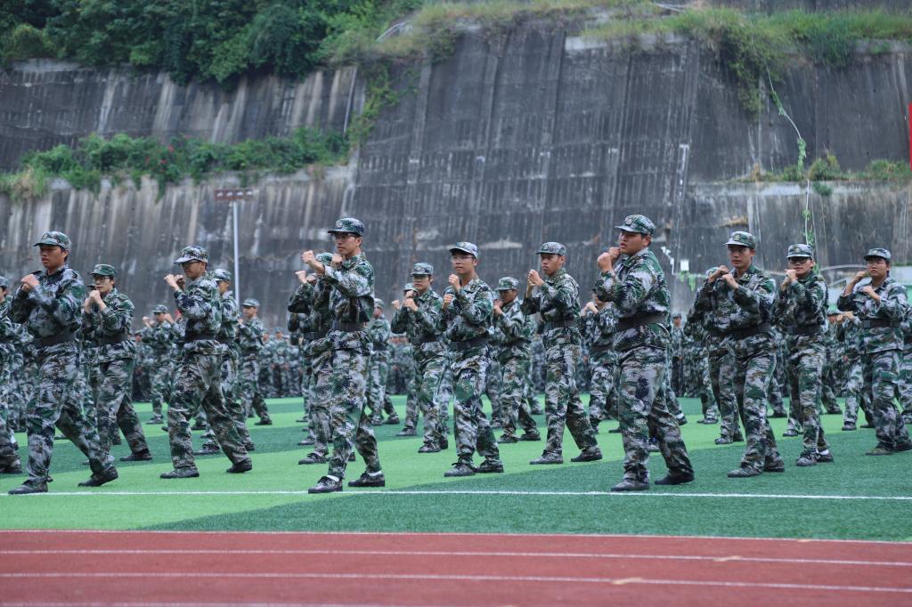女子匕首操向我们展示了巾帼不让须眉之姿,擒敌拳、警棍术方队风聚云散的队形变换带来极具气势的视觉盛宴,健身操方队动作整齐划一,挺拔的身姿、规范的动作是军训成果最好的体现。