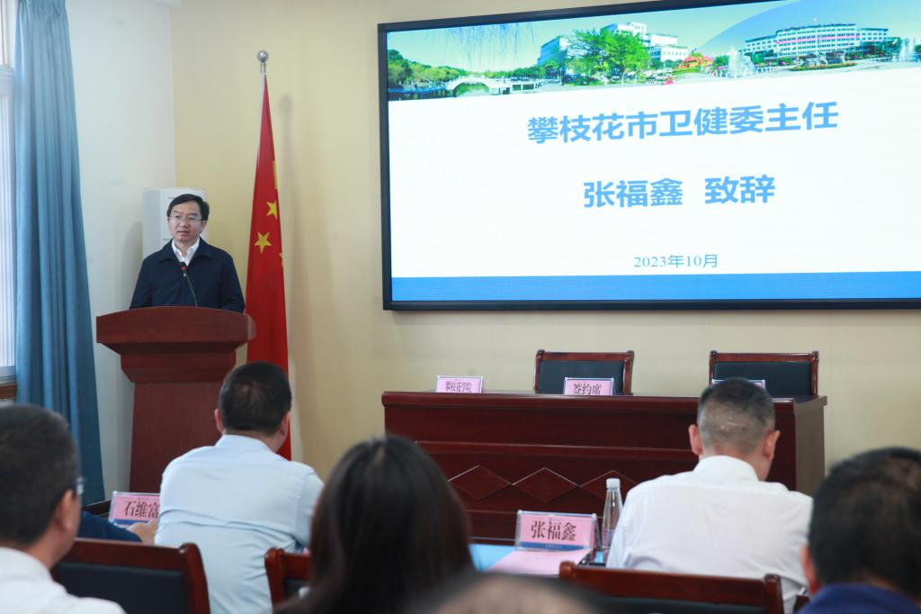 张福鑫代表市卫健委对工作站的成立表示热烈祝贺,向一直以来关心支持卫生事业发展的学校领导和广大师生表示衷心感谢。他指出,当前全市卫生健康系统深入学习贯彻习近平总书记来川视察重要讲话精神,按照省委对攀枝花“两区三地一粮仓一门户”的新定位,以高质量发展建设共同富裕区为战略引领,以打造区域医疗、区域精神、卫生等六大中心为抓手,高水平建设川西南滇西北区域医疗健康中心。他表示,学校与医院合作,对推广学生健康成长模式、促进我市社会心理健康服务更上新台阶、筑牢共同富裕的卫生健康根基有重要意义。