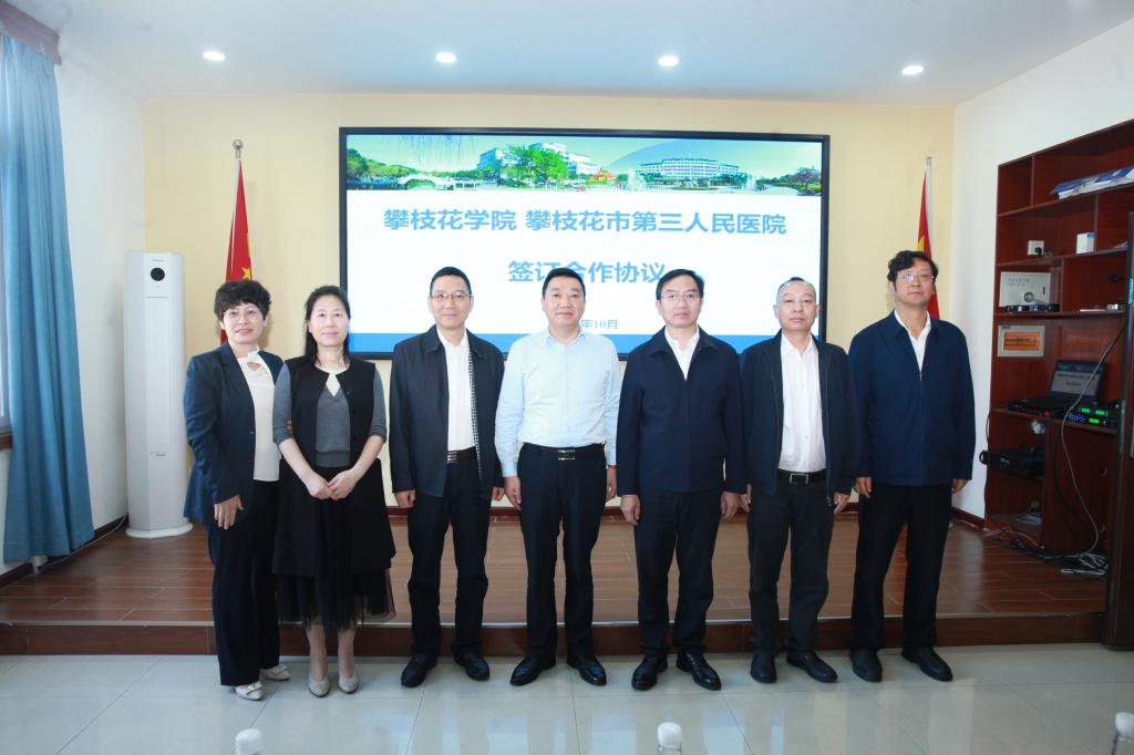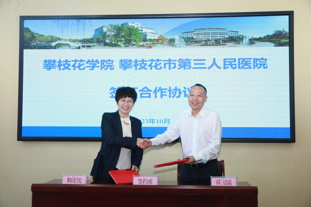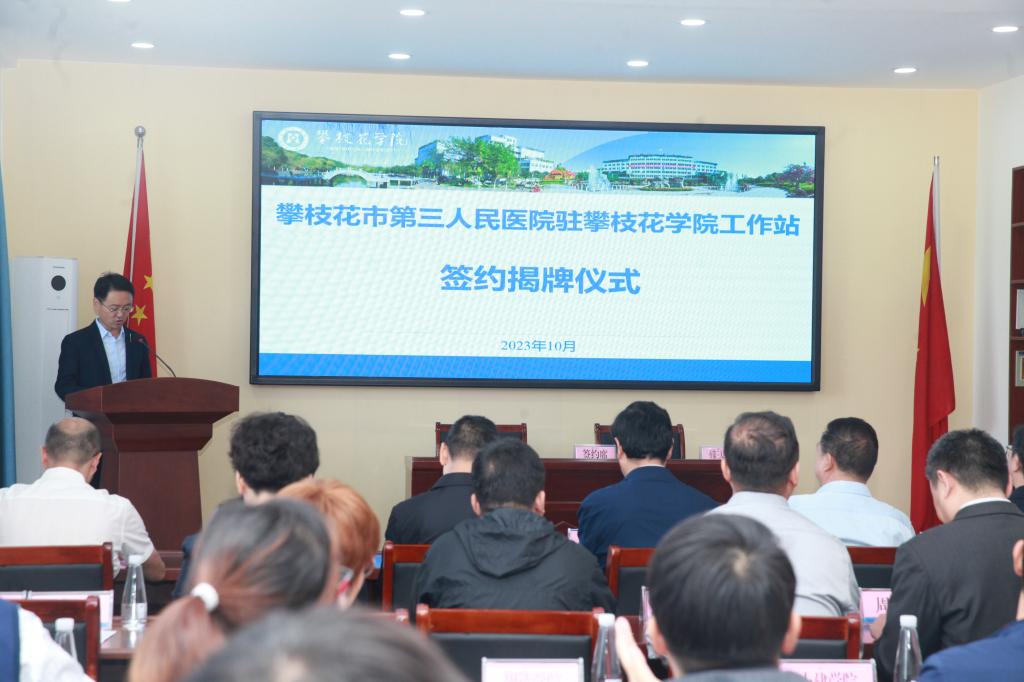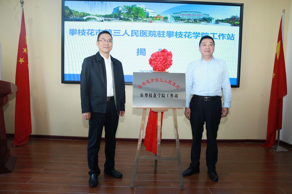 我校与攀枝花市第三人民医院签订了合作共建协议。胥刚、贺云明共同为攀枝花市第三人民医院驻攀枝花学院工作站揭牌。