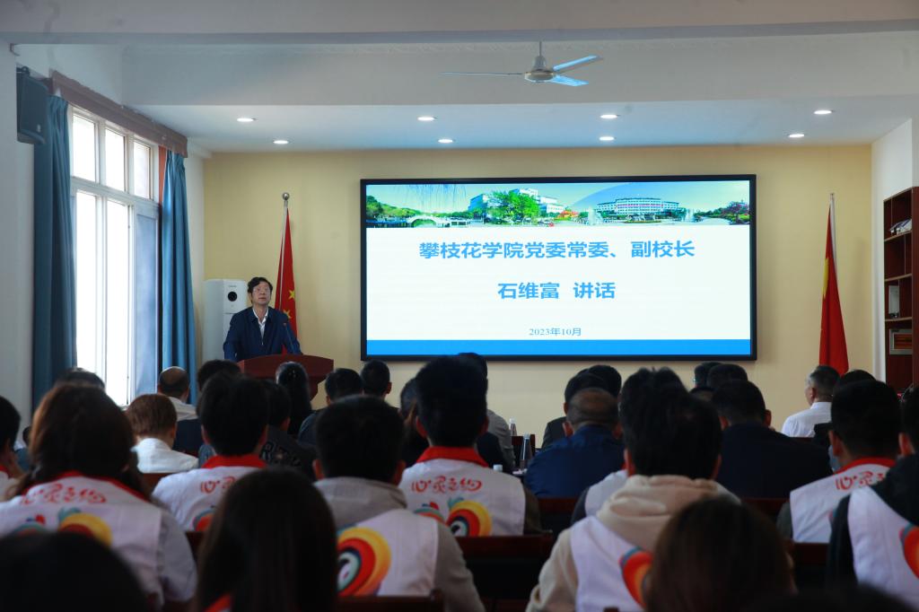 石维富首先感谢了市卫健委、市第三人民医院、附属医院对学校的支持。他指出,市第三医院驻校工作站落户我校,是医校合作深入学习贯彻习近平新时代中国特色社会主义思想,落实生命至上、师生至上要求,以抓好心理健康、精神卫生等工作保障师生身心健康发展的重要举措,对助力文明城市、健康攀枝花和全国文明校园建设具有重要意义。他希望,工作站的成立能够进一步加强双方沟通交流、拓宽心理健康教育渠道、整合双方资源,努力把工作站建成校企合作基地、学生服务基地、学生成才基地、学生工作基地、对外展示基地,让工作站实实在在为师生心理健康服务。
