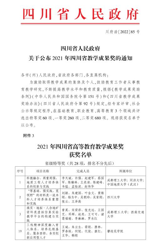 36、历史突破——学校荣获四川省高等教育教学成果特等奖