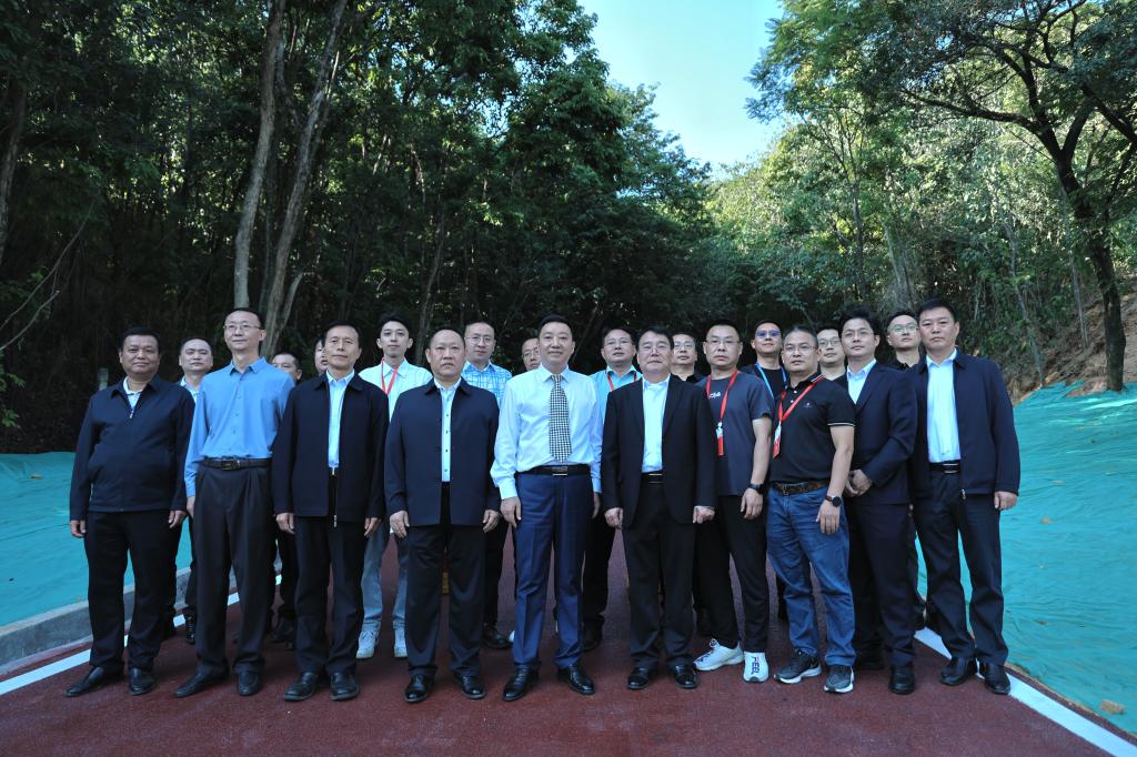 胥刚、王曙光、张国锷、嘉宾、校友、施工单位代表共同为“汉阙”落成揭幕暨学校公园观光车道互通(A线)工程竣工剪彩。