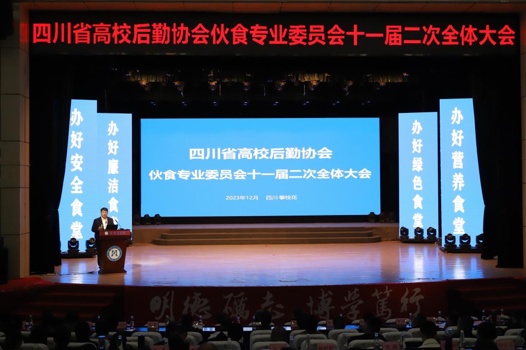 12月6日,由四川省高校后勤协会主办,电子科技大学承办,我校协办的四川省高校后勤协会伙食专业委员会十一届二次全体大会在我校顺利召开。本次大会以“办好安全食堂、办好营养食堂、办好廉洁食堂、办好绿色食堂”为主题。省教育厅基建后产中心主任刘士喜,省高校后勤协会副会长高庆,省高校后勤协会伙专会主任曾翎、副主任罗钦月、秘书长王登峰,省教育厅基建后产中心学校食品安全科,全省120所高校代表共300余人参加会议。副校长朱波强出席会议并致辞,党委副书记、纪委书记彭徐同全体代表合影留念。