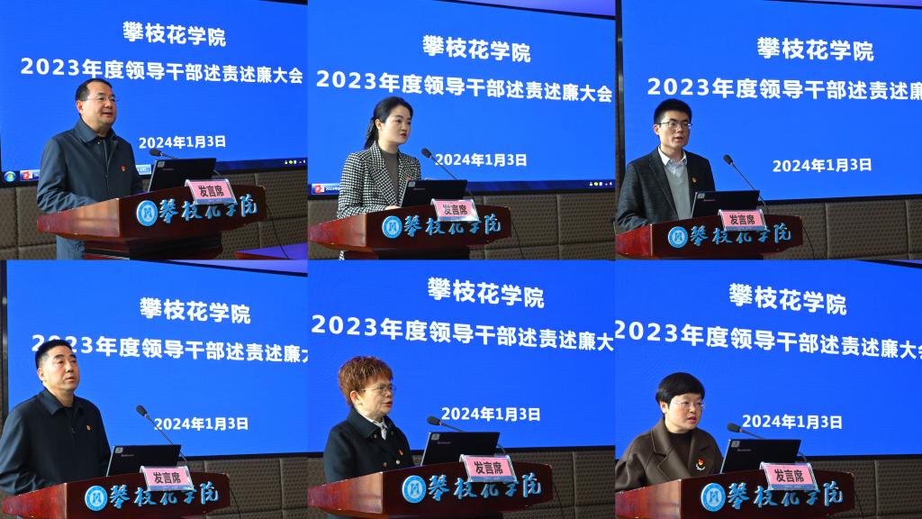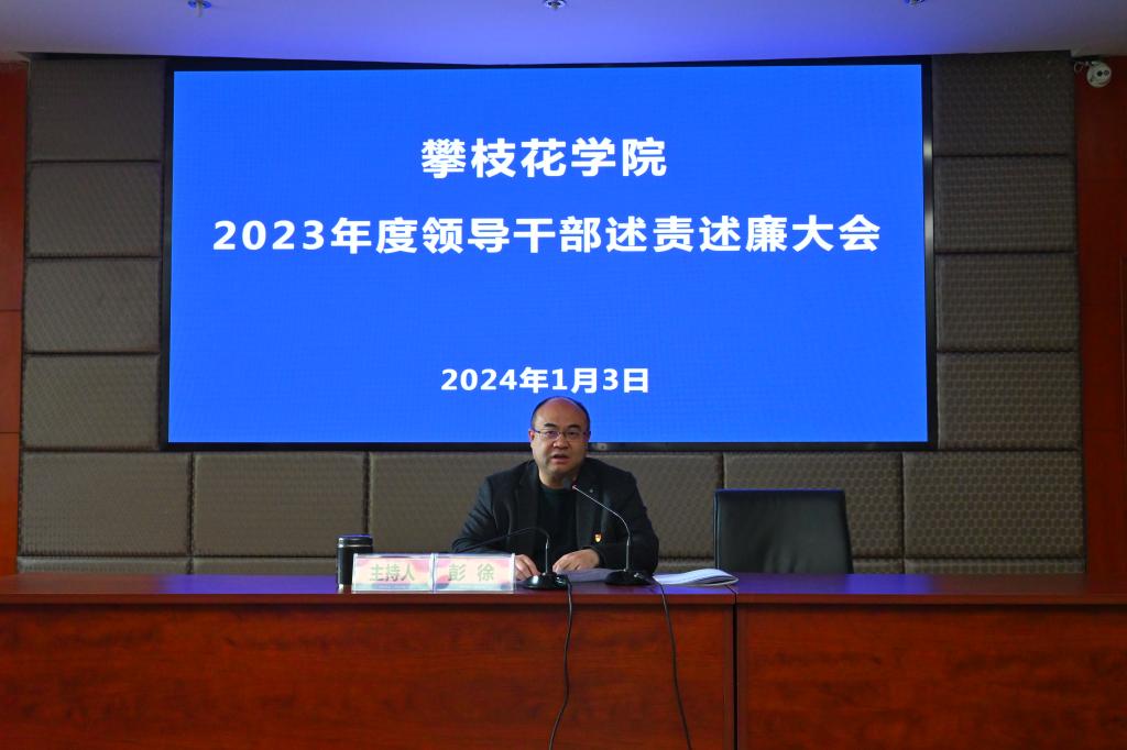 1月3日上午,2023年度领导干部述责述廉大会在办公楼416会议室召开。全体在校校领导,校党委委员、纪委委员,现场述责述廉相关单位负责人,纪委机关全体成员参加会议。省纪委监委驻攀枝花学院纪检监察组组长,党委副书记、纪委书记彭徐主持会议。