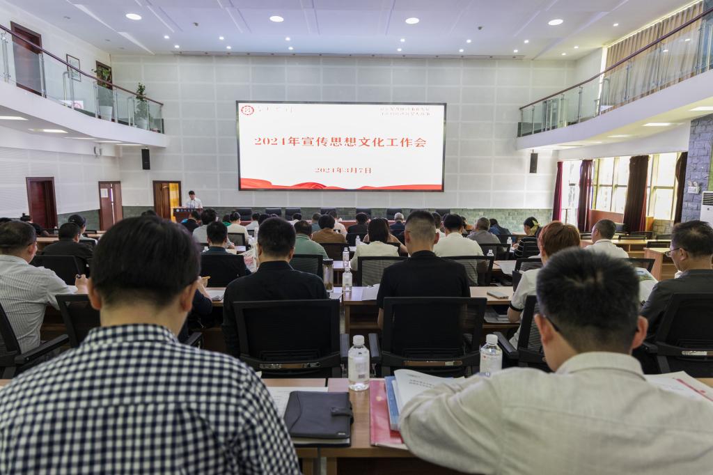 为深入学习贯彻习近平文化思想,全面贯彻落实全国全省全市宣传思想文化、网络安全和信息化以及宣传部长工作会议要求,总结回顾2023年工作,对2024年全校宣传思想文化工作进行安排部署,3月7日下午,我校在图书馆学术报告厅召开全校宣传思想文化工作会议。党委书记胥刚出席会议并讲话,党委副书记刘立新出席会议并作工作部署。学校机关教辅单位负责人、各直属党组织书记、各二级教学单位书记、分管副书记参加会议。会议由党委常委、宣传部部长朱云生主持。