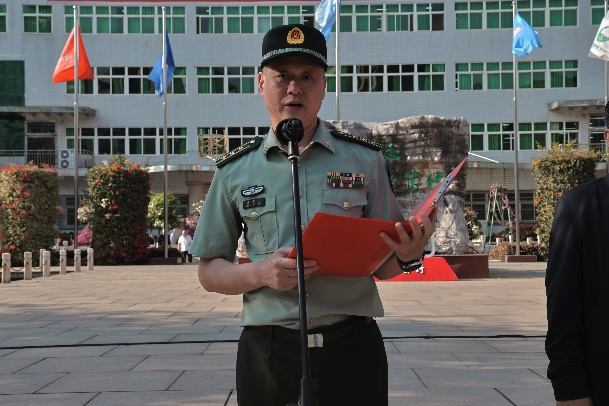 攀枝花市东区人武部上校部长康贺卫为新兵们送上祝贺、祝福和希望。
