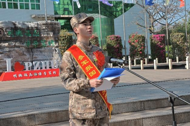 退伍大学生代表魏浩南用亲身经历激励着新战友,并且送上了美好的祝福。