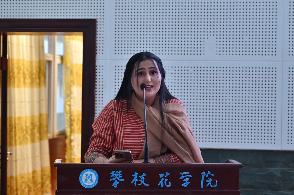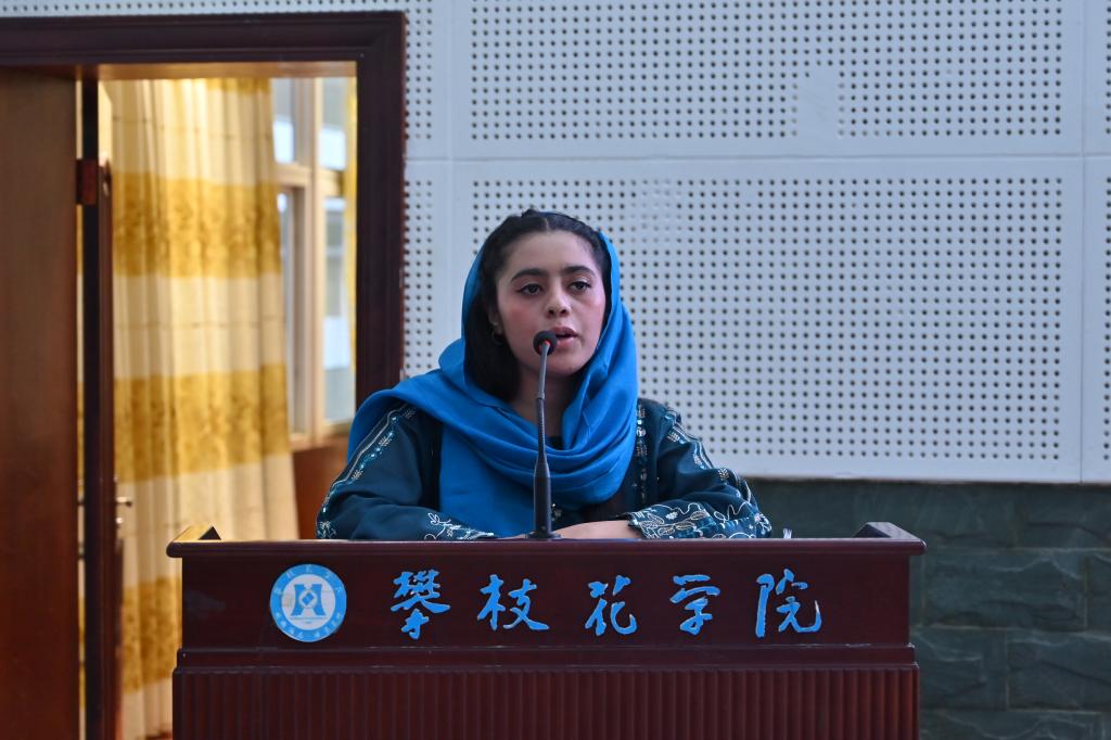 高年级学生代表雯尔分享了在攀学习的经历和感悟,讲述了学校良好的学习环境和丰富的教育资源,大爱的老师和友好的同学让她掌握了扎实的专业知识,熟知中国文化,也能流畅地用汉语交流。她希望新生们也能像她一样学好汉语、多了解中国、爱上中国文化。