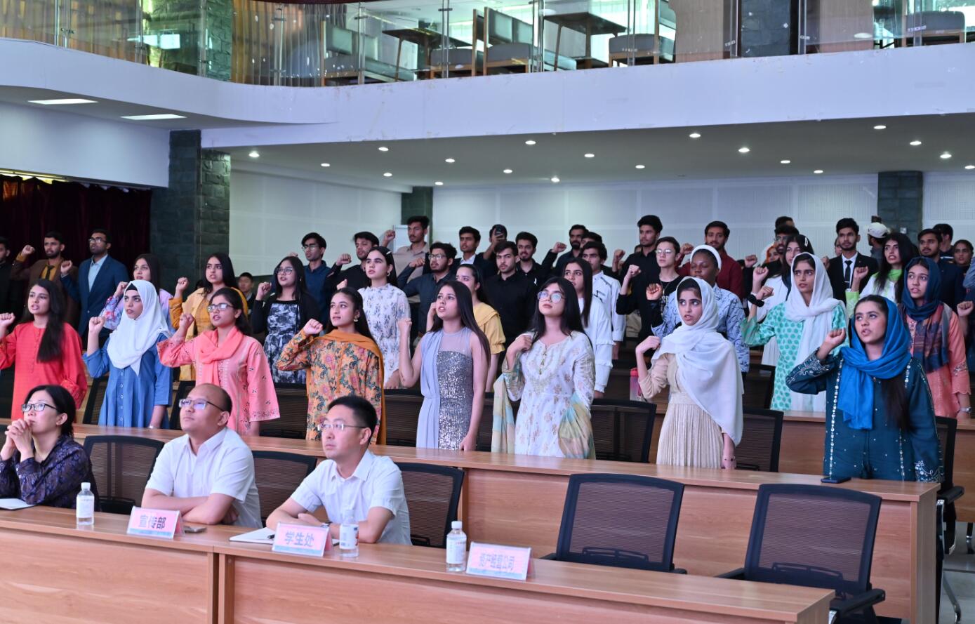 王曙光致辞。他代表学校对2024级51名来华留学新生表示热烈的欢迎和诚挚的问候。随后,他向新生们介绍了学校的办学历史、人才培养及国际交流情况,勉励同学们珍惜青年时光,夯实语言技能,成就留学梦想。他希望同学们在努力学习专业知识的同时,充分了解、体验中国文化,加强交流互鉴,当好融通中外文明的友好使者。