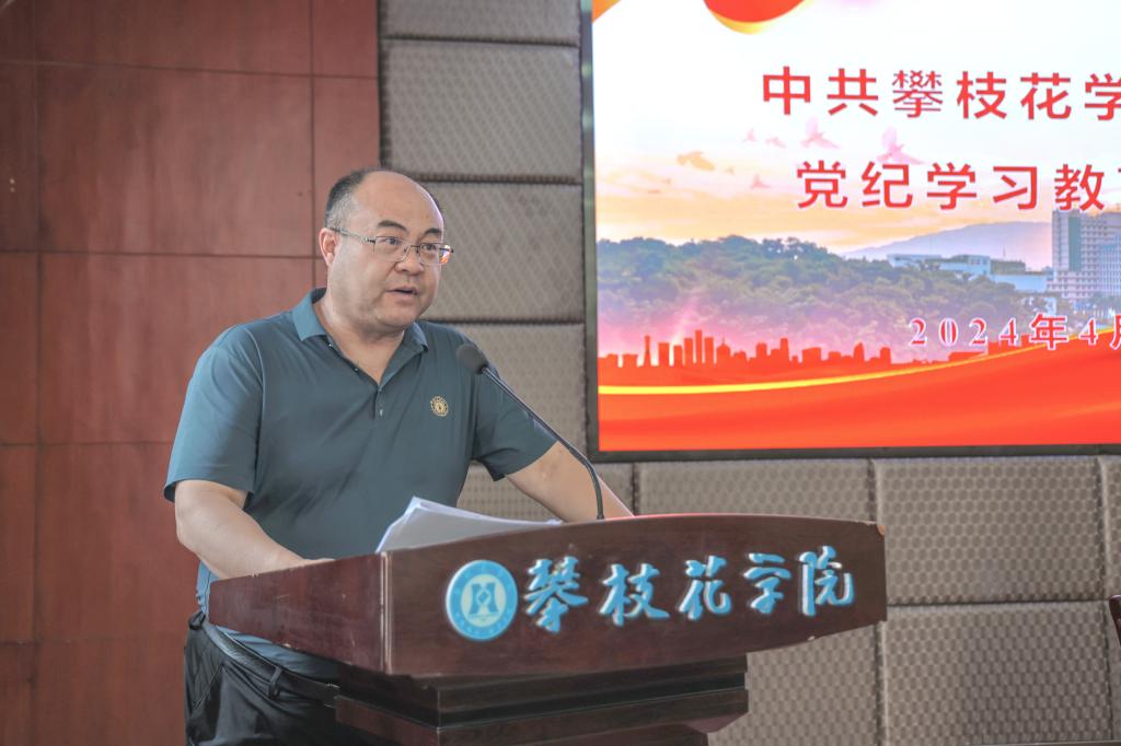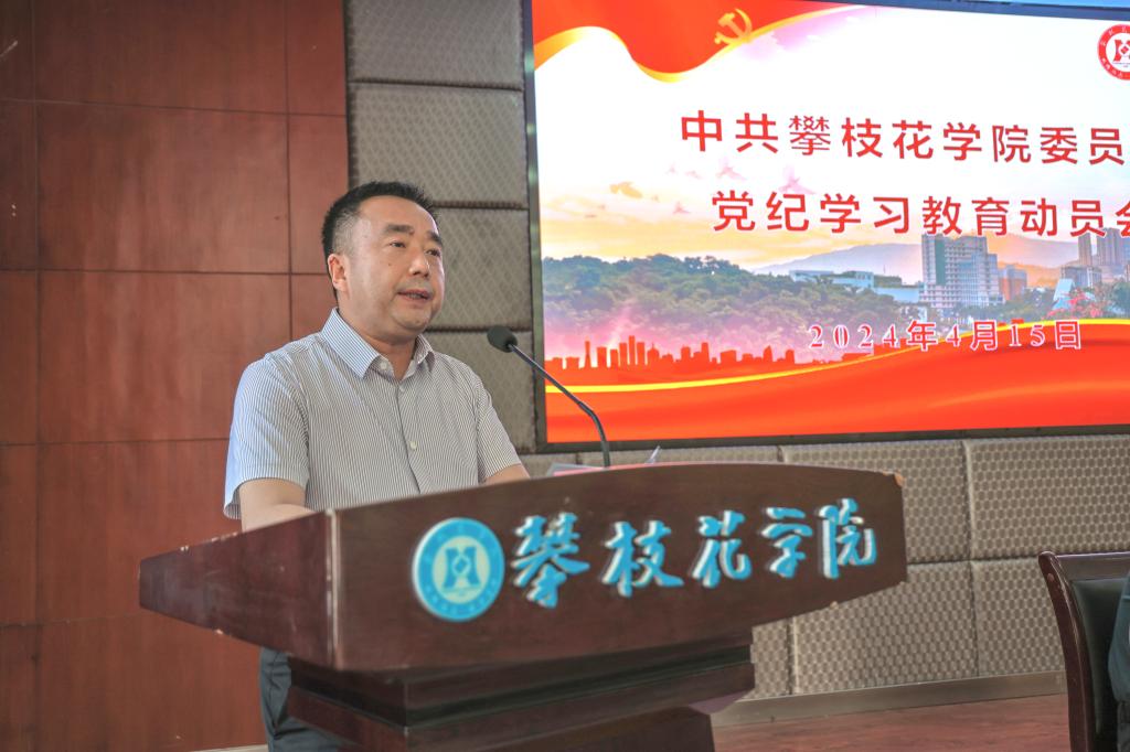 4月15日下午,我校在416会议室召开攀枝花学院党纪学习教育动员会,深入学习贯彻习近平总书记关于党纪学习教育的重要讲话重要指示精神和中央党的建设工作领导小组会议精神,落实省委有关工作要求,安排部署学校党纪学习教育工作。在校的党委领导班子成员,各直属党组织书记,机关、教辅单位负责人,党纪学习教育工作专班成员参加会议。党委书记胥刚主持会议并讲话。