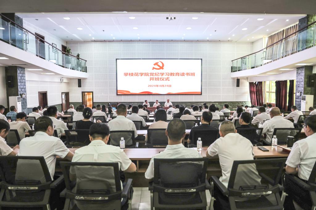 根据中央、省委关于党纪学习教育的安排部署,4月24日,我校在学术报告厅举行党纪学习教育读书班开班式暨专题辅导报告会,攀枝花市委常委、市纪委书记、市监委主任赵平应邀就学习《中国共产党纪律处分条例》作专题辅导。在校的党委领导班子成员,各直属党组织书记,机关、教辅单位负责人,党纪学习教育工作专班成员参加学习。党委书记胥刚参加会议并讲话。会议由党委副书记刘立新主持。