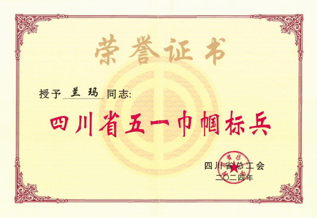 为深入学习贯彻党的二十大精神,大力弘扬劳模精神、劳动精神、工匠精神,鼓舞激励全省广大女职工在强国建设、民族复兴新征程上更好发挥“半边天”作用。近日,四川省总工会印发《四川省总工会关于表扬四川省五一巾帼标兵岗(标兵)的决定》,我校康养学院教师兰玛教授被授予“四川省五一巾帼标兵”荣誉称号。