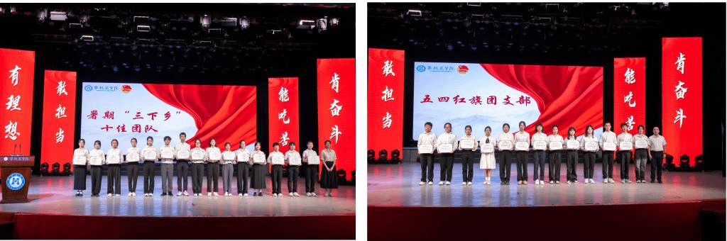 大会现场表彰了2023年度“两红两优”、2023年暑“三下乡”的优秀个人和集体。