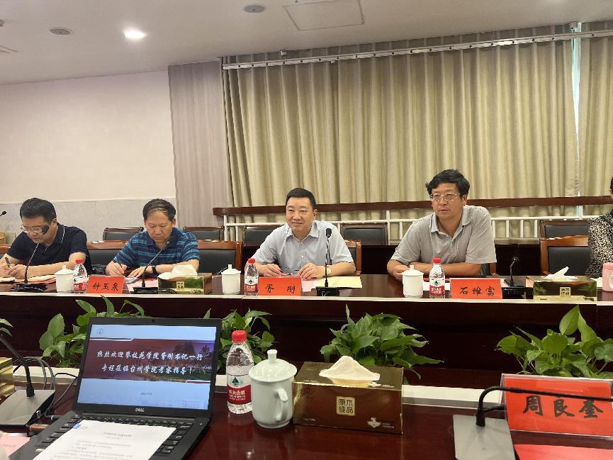 两校发展规划处、教务处、科技处、学科处、人事处等职能部门负责人进行了互动交流。考察期间,胥刚一行还实地走访了台州市大陈岛垦荒精神研究中心、台州生物医化产业研究院、高性能工业泵与真空装备浙江省工程研究中心。