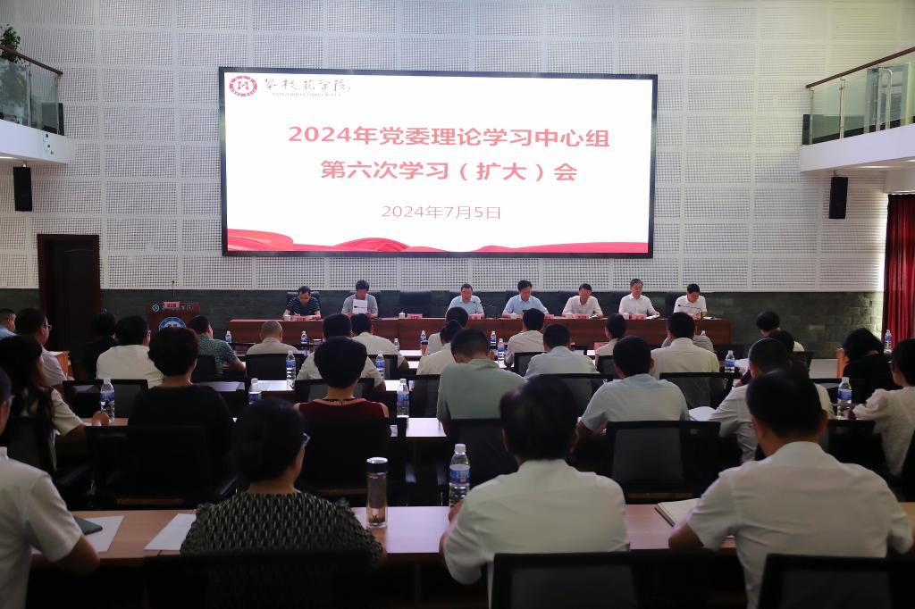 为深入学习贯彻习近平总书记关于健全全面从严治党体系、全面加强党的纪律建设、教育科技人才的重要论述精神,进一步深化党纪学习教育。7月5日下午,学校在学术报告厅召开2024年党委理论学习中心组第六次学习(扩大)会,在校校领导、全体党员中层干部参加会议。党委书记胥刚主持会议并讲话。