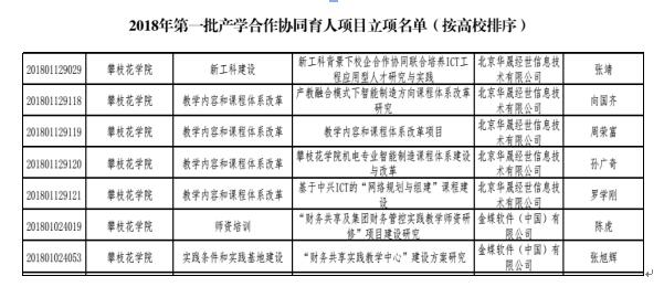 近日,从《教育部高等教育司关于公布有关企业支持的2018年第一批产学合作协同育人项目立项名单的函》(教高司函〔2018〕47号)中获悉,我校教师张靖、向国齐、周荣富、孙广奇、罗学刚、陈虎、张旭辉负责的7个项目成功入选。