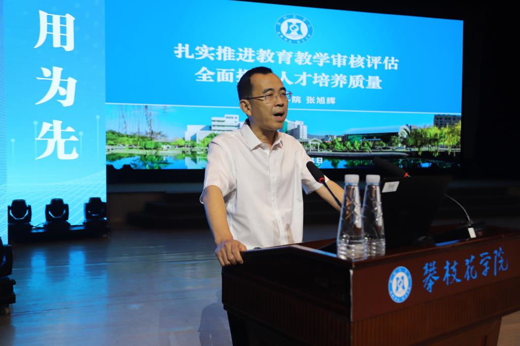 党委常委、副校长张旭辉围绕教育教学审核评估,以《扎实推进教育教学审核评估 全面提升人才培养质量》为题作专题发言。他深入剖析了学校迎接审核评估的优势和现存的问题。他指出,新一轮本科教育教学审核评估,事关学校长远发展,关乎全体师生切身利益,要高度重视、振奋精神,全力迎接教育教学审核评估;要全员参与、协同发力,教育教学工作再上新台阶;要正视问题、找准差距,全面补齐短板弱项;要齐心协力,真抓实干,紧起来,严起来,强起来,为教育教学水平提高,人才培养质量提升共同努力!