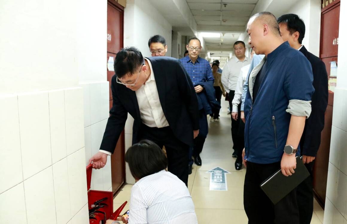 崔昌宏一行实地走访查看了学校图书馆、心理健康教育中心、学生宿舍、食堂等场所,仔细询问了新学期学生返校和学习生活情况,深入了解了学生图书借阅和心理健康教育工作开展情况,认真检查了学校食堂的食品安全卫生情况和学生宿舍的消防安全设施及应急通道。