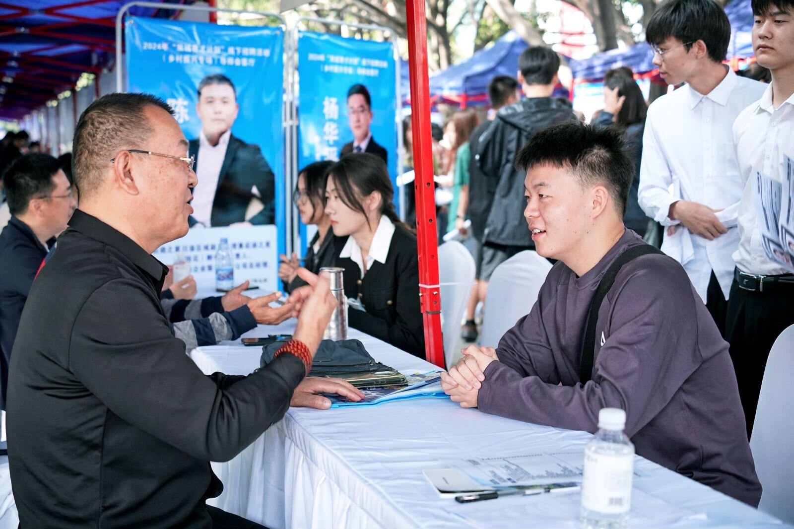 在C教广场举行的以“乡村振兴”为主题的线下招聘活动中,来自四川国光农化股份有限公司等174家乡村振兴领域的单位,为学生提供就业岗位数超5000个。攀枝花市人力资源和社会保障局等针对相关求职政策、创业政策开展面对面咨询服务。招聘会现场还设立了青创导师会客厅,4名农业农村领域创业经验丰富的导师为有志创业的同学们解疑释惑、把脉问诊。同时,7家专注于乡村振兴的企业,开展线上直播岗位推介,吸引了9395名求职者在线观看,成功提交1347份求职简历。