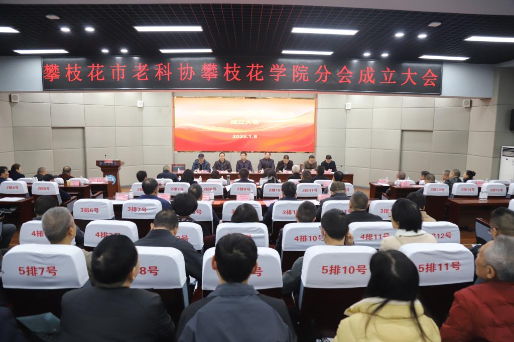 1月8日上午,攀枝花市老科协攀枝花学院分会在我校清风厅举行成立大会。攀枝花市市委老干部局、市科协、市科技局、市民政局、市委社会工作部分管领导参加会议。攀枝花市老科协会长赵忠义、学校副校长石维富出席会议并讲话。