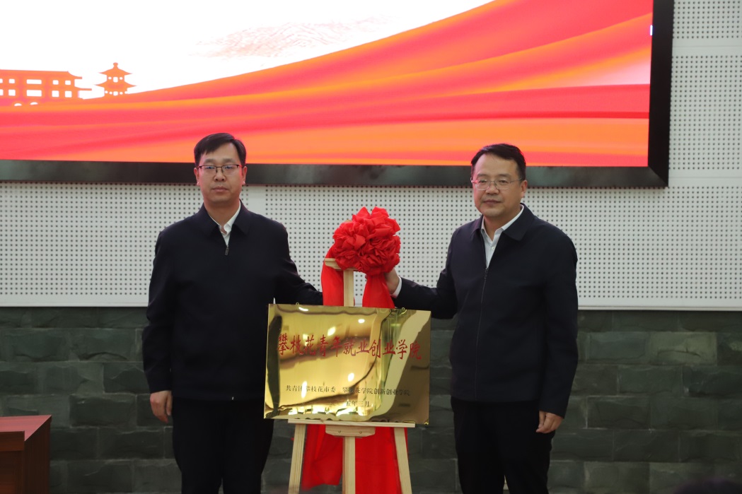 3月27日,为落实市委十一届八次全会精神、推动青年高质量创新创业就业,由我校创新创业学院与共青团攀枝花市委联合共建的“攀枝花青年就业创业学院”正式揭牌成立,揭牌仪式在学校图书馆学术报告厅举行。
