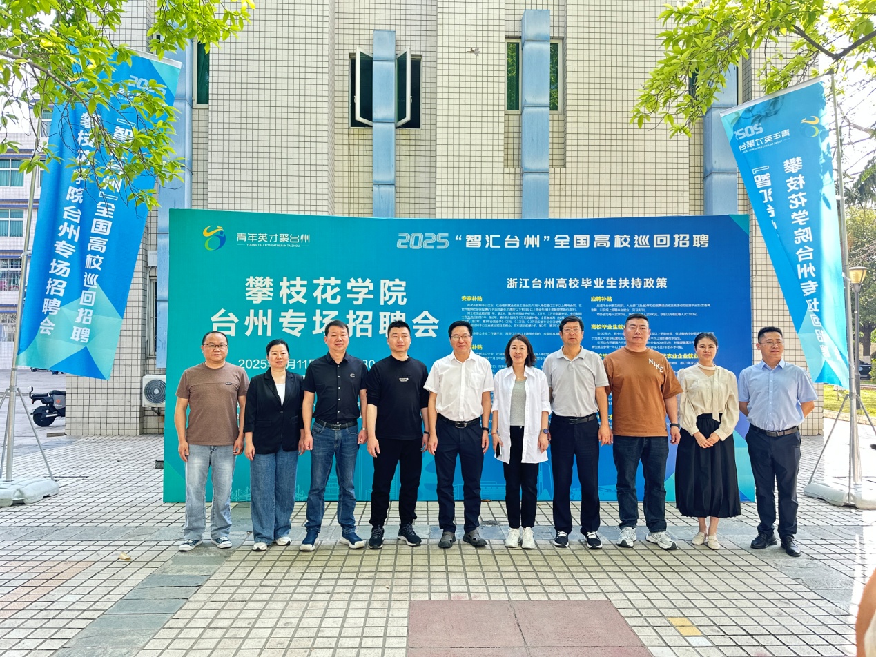 为积极搭建2025届毕业生就业平台,提供优质单位和高品质岗位,强化与浙江省温岭市的交流和合作,巩固双方长期以来形成的友好关系,4月11日上午,我校成功举办2025“智汇台州”全国高校巡回招聘攀枝花学院专场招聘会。温岭市人力社保局党组书记、局长江淼,温岭市委组织部、人才工作服务中心办公室主任程豪,温岭市人才交流中心主任张希带队10家单位参会,学校党委副书记、校长李兴贵,党委常委、副校长石维富亲临现场指导交流,看望参会的单位和应聘毕业生,了解用人单位用人需求和毕业生应聘情况。